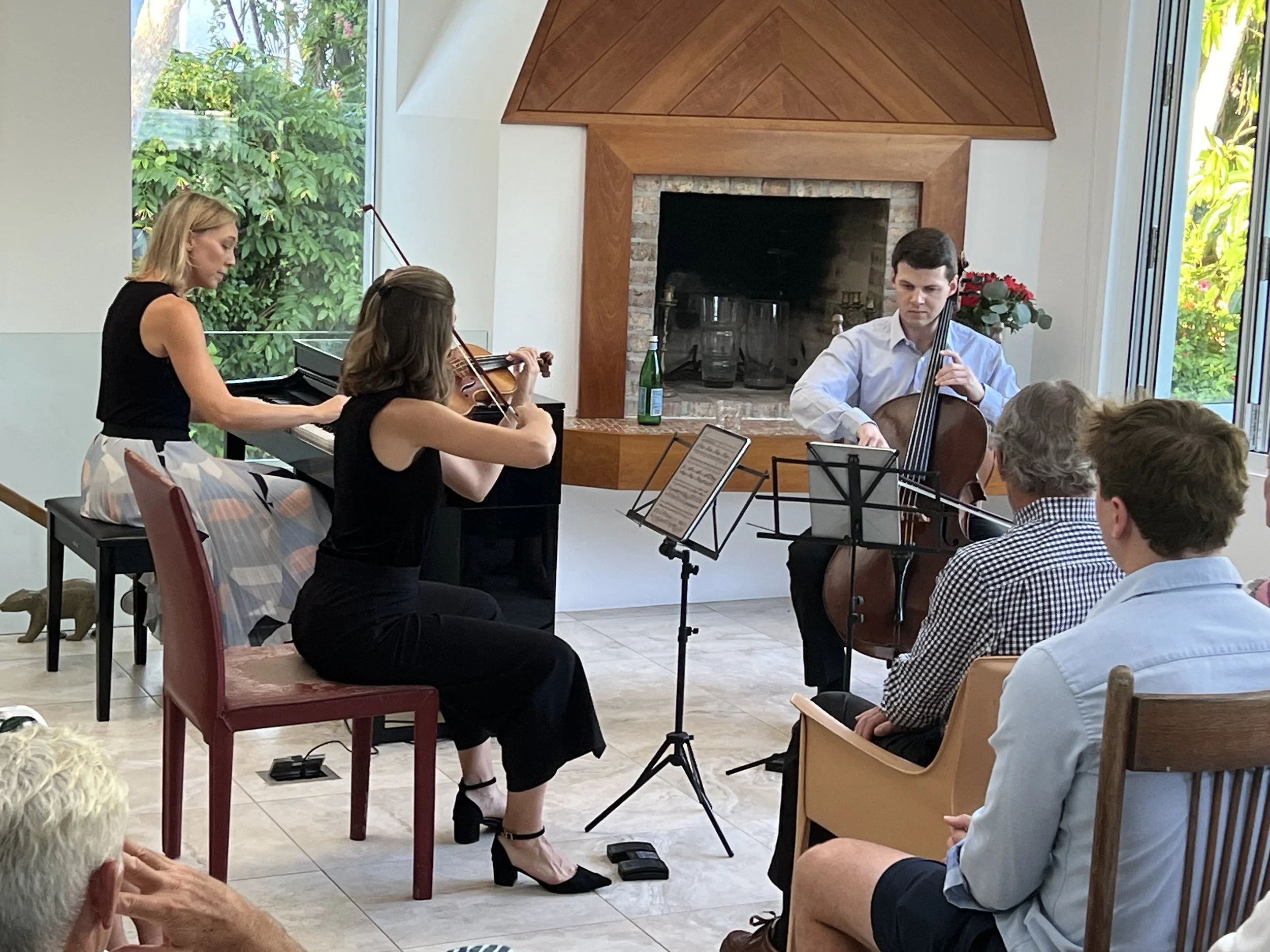 Bermuda Piano Trio performing at a house concert | Bermuda